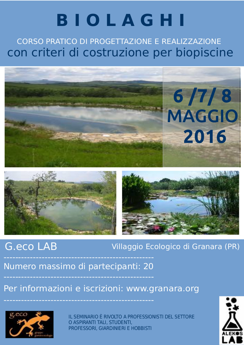 Durante il corso verranno illustrate le varie tecniche di progettazione di biopiscine e biolaghi, focalizzandosi in particolare sull'autocostruzione, e avremo modo di fare esperienza pratica contribuendo alla costruzione della biopiscina di Granara.